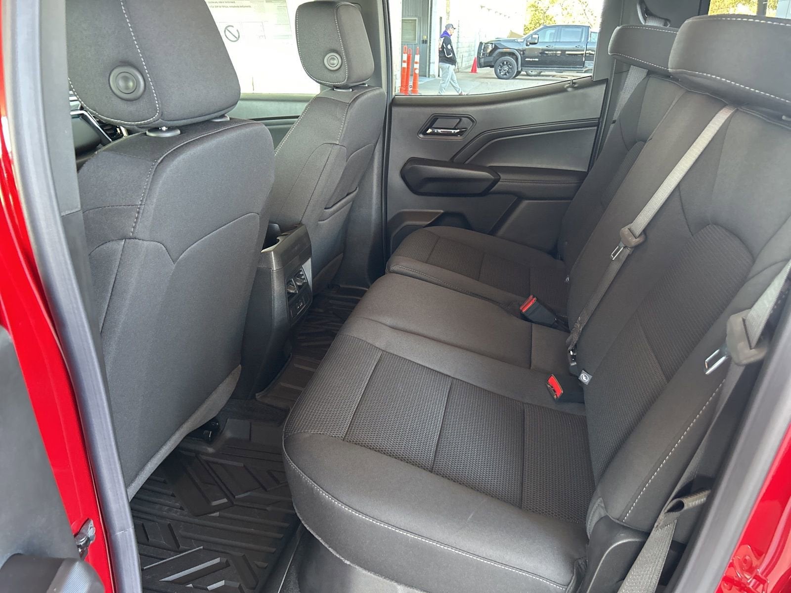 This vehicle comes nicely equipped with Canyon Safety Plus Package (Rear Cross Traffic Braking and Ultrasonic Rear Park Assist), Convenience Package (120-Volt Bed Mounted Power Outlet, 2 Rear USB Ports in Center Console (Charge-Only), Front LED Fog Lamps, Inside Rear-View Auto-Dimming Mirror, MultiStow Tailgate Storage Compartment, Rear of Console 120-Volt Power Outlet, Remote Vehicle Starter System, and Tailgate Keyed Cylinder Lock), 1 Rear USB Port in Center Console (Charge-Only), 2 1st Row USB Charge/Data Ports, 3.42 Rear Axle Ratio, 4-Way Manual Front Passenger Seat Adjuster, 4-Wheel Disc Brakes, 6 Speakers, 6-Speaker Audio System Feature, 6-Way Manual Driver Seat Adjuster, ABS brakes, Air Conditioning, Alloy wheels, AM/FM radio, Apple CarPlay/Android Auto, Auto High-beam Headlights, Automatic Emergency Braking, Automatic Stop/Start, Brake assist, Bumpers: body-color, Canyon Pro Safety, Cloth Seat Trim, Compass, Delay-off headlights, Driver door bin, Driver vanity mirror, Dual front impact airbags, Dual front side impact airbags, Electronic Stability Control, Emergency communication system: OnStar, Following Distance Indicator, Forward Collision Alert, Front anti-roll bar, Front Bucket Seats, Front Center Armrest, Front Passenger Seatback Map Pocket, Front wheel independent suspension, Heated door mirrors, Illuminated entry, Low tire pressure warning, Navigation System, Occupant sensing airbag, Off-Road Suspension, Outside temperature display, Overhead airbag, Overhead console, Panic alarm, Passenger door bin, Passenger vanity mirror, Power door mirrors, Power steering, Power windows, Radio data system, Rear reading lights, Rear step bumper, Rear window defroster, Remote keyless entry, Security system, Speed control, Speed-sensing steering, Split folding rear seat, Steering wheel mounted audio controls, Stop/Start System Disable Button Engine Control, Tachometer, Tilt steering wheel, Traction control, Trip computer, Variably intermittent wipers, Wheels: 18 x 8.5 Gloss Black Finish Aluminum, and Wireless Apple CarPlay/Wireless Android Auto.