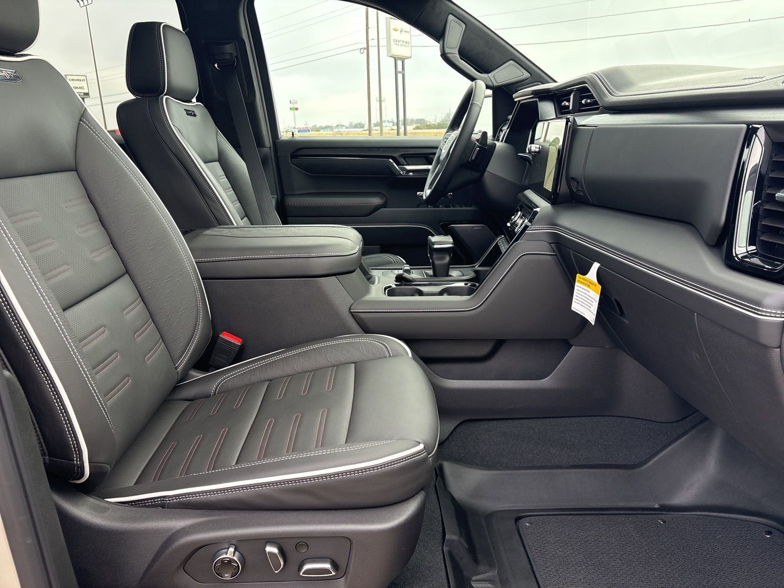 This vehicle comes nicely equipped with Trailering Package (Hitch Guidance), Heads-Up Display, Memory seat, Power Sunroof, 12 Speakers, 120-Volt Bed Mounted Power Outlet, 120-Volt Interior Power Outlet, 16-Way Power Driver Seat Adjuster w/Lumbar, 16-Way Power Passenger Seat Adjuster w/Lumbar, 2 Charge/Data USB Ports Inside Center Console, 2 Type-C Charge-Only Rear USB Ports, 2 USB Ports, 220 Amp Alternator, 3.23 Rear Axle Ratio, 4-Wheel Disc Brakes, ABS brakes, Air Conditioning, Alloy wheels, AM/FM radio: SiriusXM with 360L, Apple CarPlay/Android Auto, Auto High-beam Headlights, Auto-dimming door mirrors, Auto-dimming Rear-View mirror, Automatic Emergency Braking, Automatic temperature control, Bed View Camera, Block heater, Bose Premium Series w/12-Speaker System, Brake assist, Buckle to Drive, Color-Keyed Carpeting Floor Covering, Compass, Deep-Tinted Glass, Delay-off headlights, Driver door bin, Driver Memory, Driver vanity mirror, Driver-Selectable Full-Locking Front Differential, Driver-Selectable Full-Locking Rear Differential, Dual front impact airbags, Dual front side impact airbags, Electric Rear-Window Defogger, Electronic Stability Control, Emergency communication system: OnStar, Floor-Mounted Center Console, Following Distance Indicator, Forward Collision Alert, Front anti-roll bar, Front Bucket Seats, Front Center Armrest, Front dual zone A/C, Front fog lights, Front Pedestrian Braking, Front Prem Floor Liners w/Removable Carpet Insert, Front Rain-Sensing Wipers, Front reading lights, Front wheel independent suspension, Full Grain Leather Seat Trim, Fully automatic headlights, Garage door transmitter, Genuine wood dashboard insert, Genuine wood door panel insert, Gloss Black Header w/Drk Nickel Grille Insert Bars, HD Surround Vision, Heated 2nd Row Outboard Seats, Heated door mirrors, Heated Driver & Front Outboard Passenger Seating, Heated front seats, Heated rear seats, Heated steering wheel, Heavy-Duty Air Filter, Hill Descent Control, Hitch View, Illuminated entry, In-Vehicle Trailering System App, Integrated Trailer Brake Controller, IntelliBeam Automatic High Beam On/Off, Keyless Open & Start, Lane Keep Assist w/Lane Departure Warning, Leather steering wheel, LED Cargo Area Lighting, Low tire pressure warning, Multicolor 15 Diagonal Head-Up Display, MultiPro Tailgate Audio System by Kicker (LPO), Navigation System, Occupant sensing airbag, Off-Road Suspension, OnStar Services Capable, Outside temperature display, Overhead airbag, Overhead console, Panic alarm, Passenger door bin, Passenger vanity mirror, Perimeter Lighting, Power Door Locks, Power door mirrors, Power driver seat, Power Front Passenger Windows w/Express Up/Down, Power Front Windows w/Driver Express Up/Down, Power moonroof, Power passenger seat, Power Rake & Telescoping Steering Column, Power Rear Windows w/Express Down, Power Sliding Rear Window w/Rear Defogger, Power steering, Power windows, Push Button Start, Radio data system, Radio: Premium GMC Infotainment Audio System, Rain sensing wipers, Rear Cross Traffic Braking, Rear Pedestrian Detection, Rear Prem Floor Liners w/Removable Carpet Insert, Rear reading lights, Rear seat center armrest, Rear step bumper, Rear Wheelhouse Liners, Rear window defroster, Remote keyless entry, Remote Vehicle Starter System, Safety Alert Seat, Security system, SiriusXM w/360L Trial Subscription, Speed control, Speed-sensing steering, Split folding rear seat, Spray-On Pickup Bedliner w/GMC Logo, Steering Wheel Audio Controls, Steering wheel mounted audio controls, Tachometer, Telescoping steering wheel, Theft Deterrent System (Unauthorized Entry), Tilt steering wheel, Traction control, Trailer Camera Provisions, Trailer Side Blind Zone Alert, Trailer Tire Pressure Monitor System, Trip comput Price includes: $1750 - Buick & GMC Consumer Cash Program. E