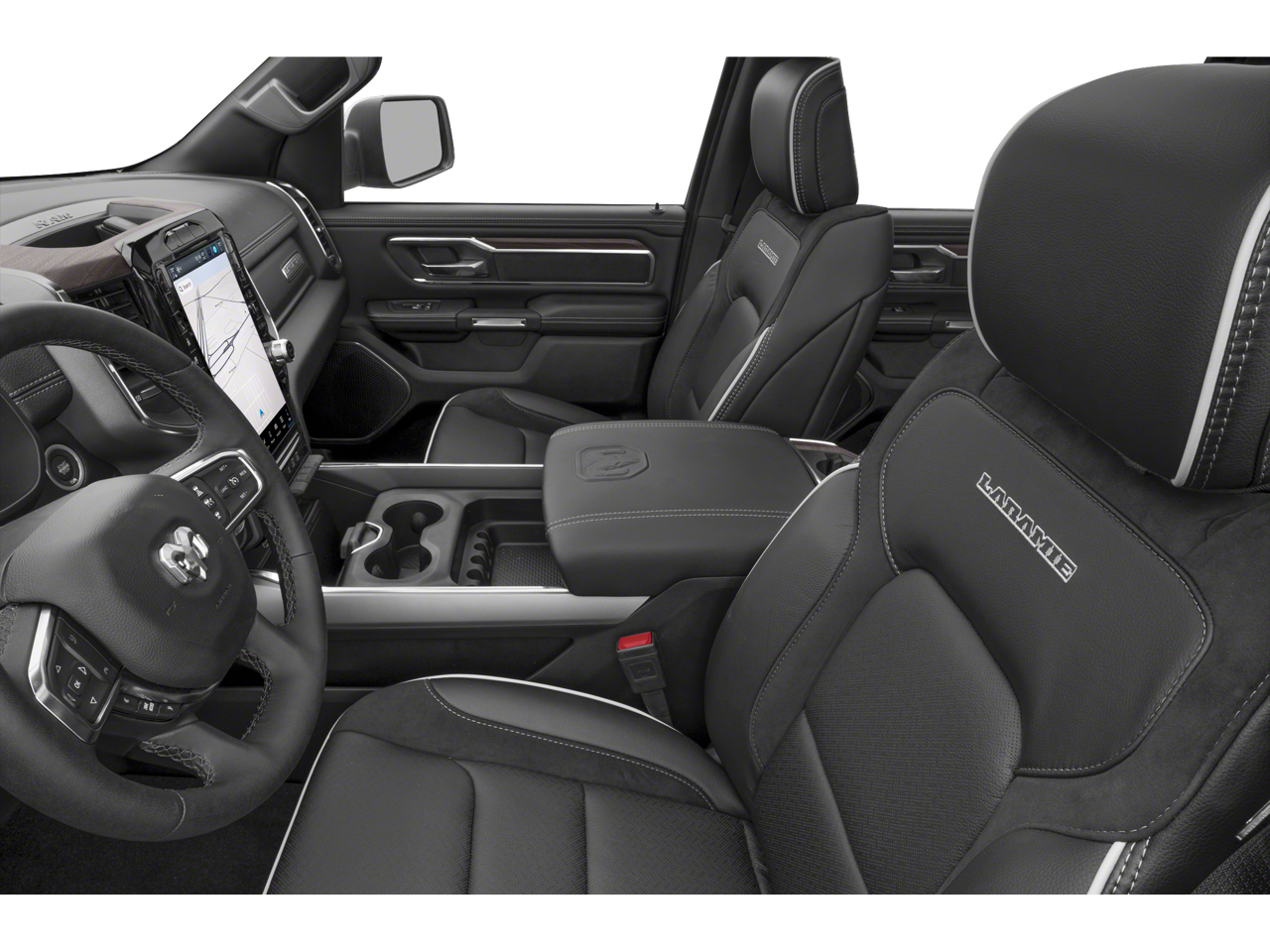 This 2025 Ram 1500 Laramie in Billet Silver Metallic Clearcoat comes with the following features: Laramie Level 1 Equipment Group (Rain Sensitive Windshield Wipers and Remote Tailgate Release), Laramie Southwest Edition (Accent Color Premium Power Mirrors, Auto Power-Folding Mirrors, Auto-Dimming Exterior Driver Mirror, Black Painted Exterior Mirrors Caps, Body Color Front Bumper, Body Color Rear Bumper w/Step Pads, Convex Wide-Angle Exterior Mirror Insert, Dual-Pane Panoramic Sunroof, Exterior Mirrors Courtesy Lamps, Exterior Mirrors w/Heating Element, Exterior Mirrors w/Memory, Exterior Mirrors w/Supplemental Signals, Grille Surround 3 Body Color Tex 4 Chrome, Power Deployable Running Boards, RAM Grille Badge - Chrome, Tow Hooks, Trailer Brake Control, Dome Dual LED Reading Lamp, and LED Dome/Reading Lamp), Quick Order Package 21H Laramie, 1500 Laramie, FCA US LLC Certified Pre-Owned Certified, 8-Speed Automatic, Black Leather, Auto High-beam Headlights, Fully automatic headlights, Radio: Uconnect 5 Nav w/12.0 Display, 10 Speakers, 3 Rear Seat Head Restraints, 33 Gallon Fuel Tank, 4 Way Front Headrests, 4-Wheel Disc Brakes, 4G LTE Wi-Fi Hot Spot, ABS brakes, Air Conditioning, Alloy wheels, AM/FM radio: SiriusXM with 360L, Anti-Spin Differential Rear Axle, Apple CarPlay, Apple CarPlay/Android Auto, Audio memory, Auto-dimming door mirrors, Auto-dimming Rear-View mirror, Automatic temperature control, Brake assist, Bumpers: chrome, Chrome Exterior Mirrors, Compass, Connected Travel & Traffic Services, Connectivity - US/Canada, Delay-off headlights, Driver door bin, Driver Seat Memory, Driver vanity mirror, Dual front impact airbags, Dual front side impact airbags, Electronic Stability Control, Front anti-roll bar, Front Center Armrest w/Storage, Front dual zone A/C, Front fog lights, Front License Plate Bracket, Front reading lights, Front Seat Back Map Pockets, Front wheel independent suspension, Garage door transmitter, Google Android Auto, GPS Antenna Input, GPS Navigation, HD Radio, Heated door mirrors, Heated Front Seats, Heated front seats, Heated rear seats, Heated Steering Wheel, Heated steering wheel, Illuminated entry, Integrated Voice Command w/Bluetooth®, Leather steering wheel, Leather Trim 40/20/40 Bench Seat, Low tire pressure warning, Memory seat, Navigation System, Occupant sensing airbag, Outside temperature display, Overhead airbag, Overhead console, Panic alarm, ParkView Rear Back-Up Camera, Passenger door bin, Passenger vanity mirror, Power 2-Way Driver Lumbar Adjust, Power 2-Way Passenger Lumbar Adjust, Power Adjust 8-Way Front Passenger Seat, Power door mirrors, Power driver seat, Power passenger seat, Power steering, Power windows, Radio data system, Rear anti-roll bar, Rear reading lights, Rear seat center armrest, Rear step bumper, Remote keyless entry, Security system, SiriusXM w/360L, Speed control, Split folding rear seat, Steering wheel mounted audio controls, Tachometer, Telescoping steering wheel, Tilt steering wheel, Traction control, Trip computer, Turn signal indicator mirrors, USB Host Flip, Variably intermi